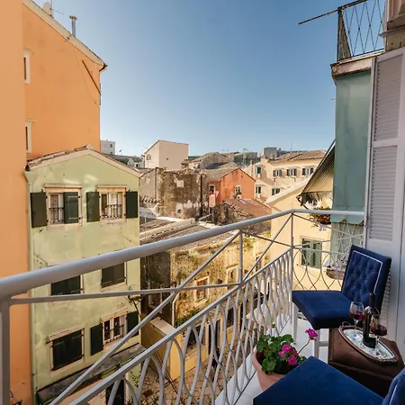 Venetian Balcony, Old Town Corfu公寓坐落在Corfu中心,距离圣斯皮里顿教堂只有一箭之地了。 客人会在露台休息。